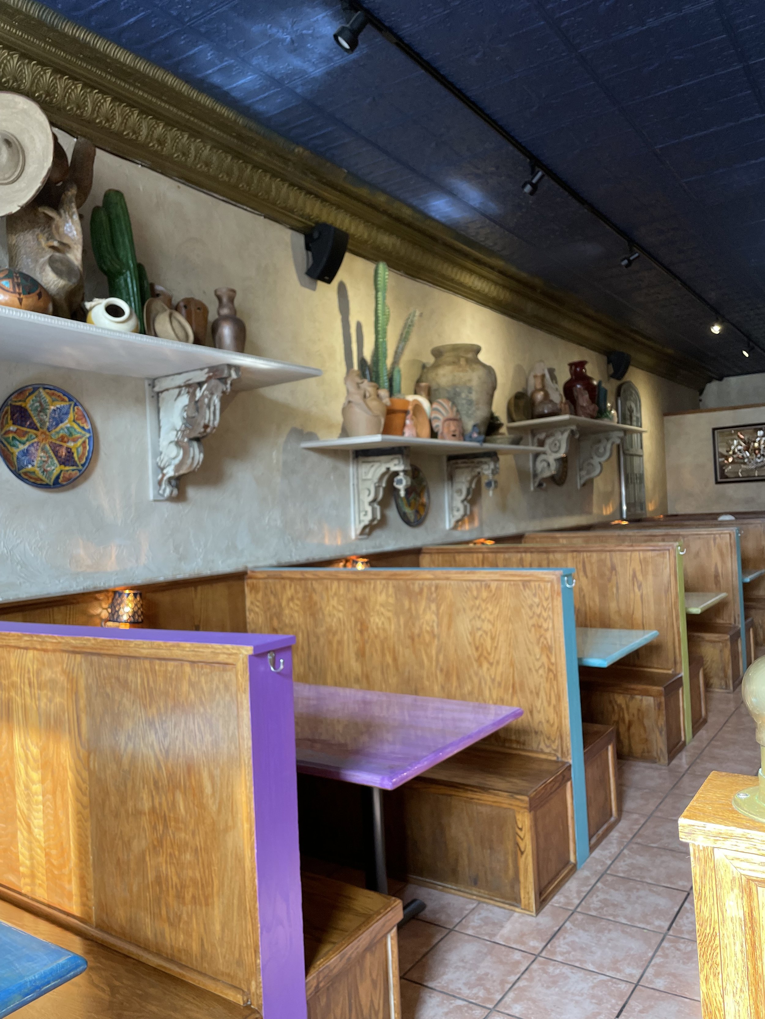 I hand-painted tabletops, styled the bar and walls, and added greenery and décor to create a vibrant, hacienda-inspired atmosphere. We are planning on having a phase 2 of renovations in 2027 which will consist of new furniture.